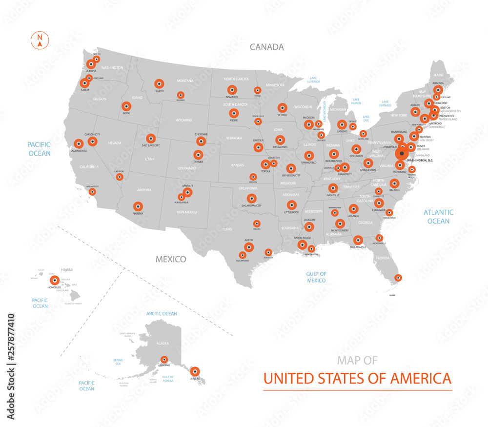 Stylized vector United States of America (USA) map showing big